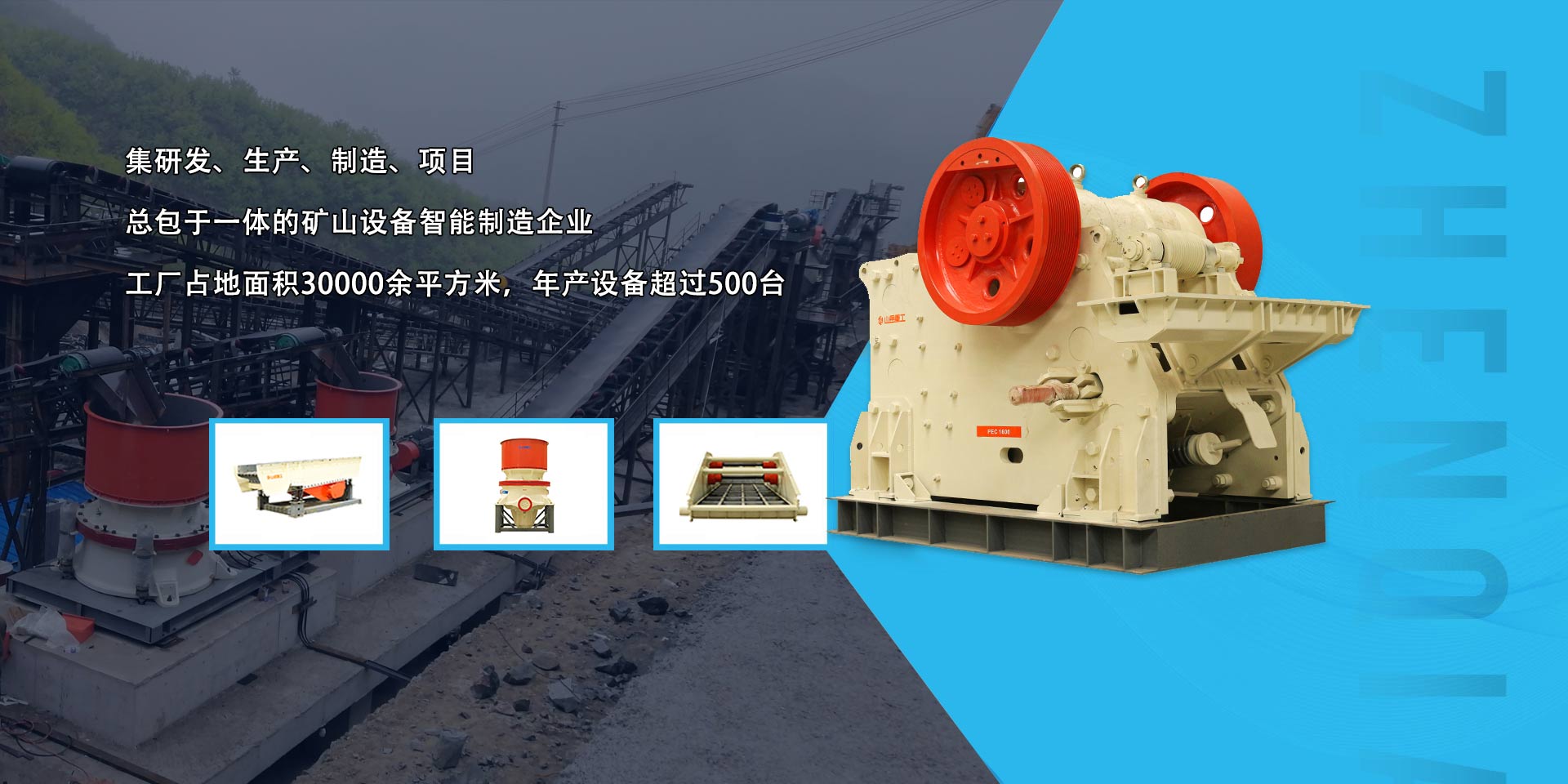山岳重工機械制造有限公司以服務全球礦業、助力社會發(fā)展為己任,為客戶提供綠色、智能礦山破碎和篩分一體化解決方案。